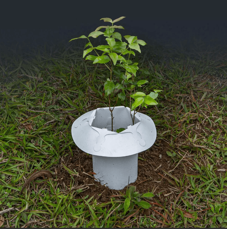 Reduza o seu trabalho de capina manual ao redor das mudas com a Coroa de Plantio Nucleário, criando um bolsão de umidade que atrai biodiversidade e aumenta a resiliência do solo. A Coroa de Plantio tambem protege o solo contra lixiviação de nutrientes, diminui a temperatura do solo e ainda impede cortes acidentais de mudas no momento da capina e da roçada.