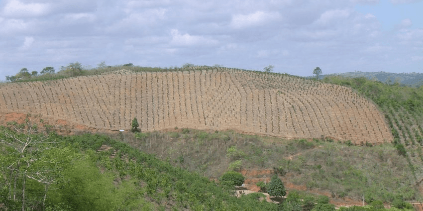 Compactação e erosão comprometem a sobrevivência das mudas.